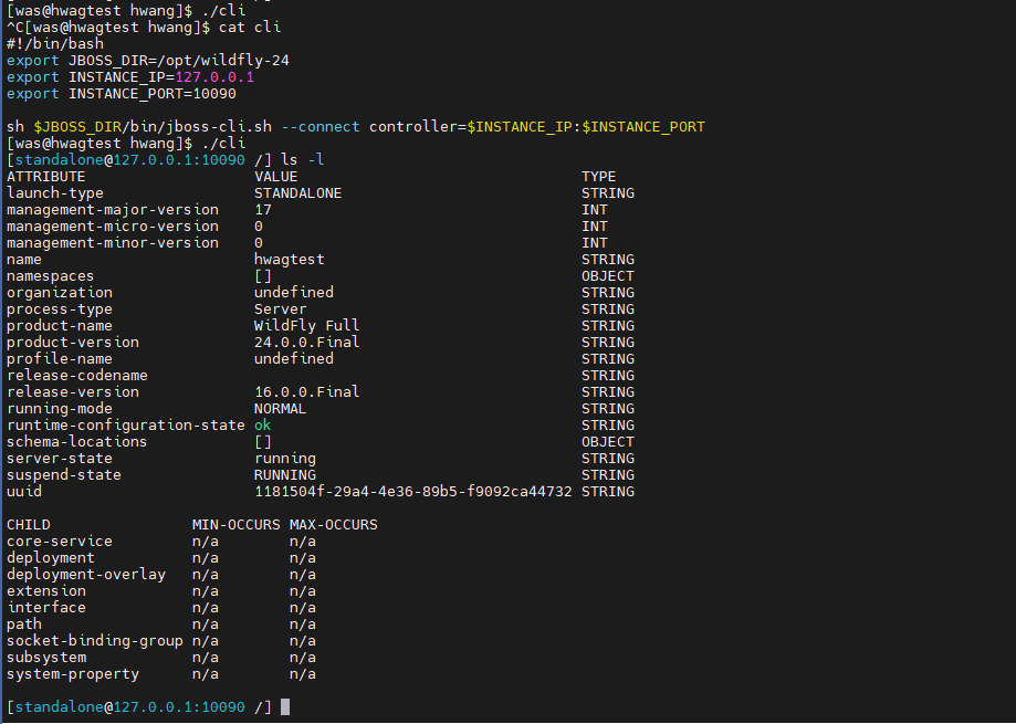 jboss-cli.sh 접속하기엔 관리자포트 및 수기로 입력하는부분을 덜고자 쉘스크립트 적용해보기.