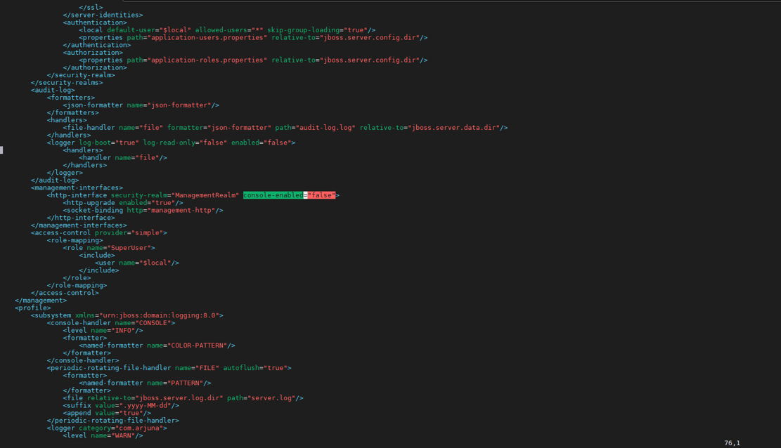 1. < http-interface security-realm="ManagementRealm" console-enabled="false" > 설정추가