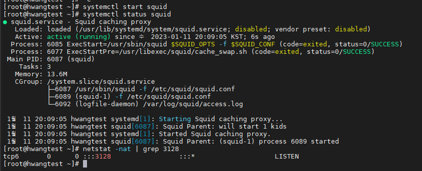 # squid 기동