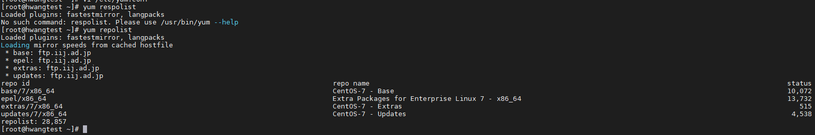 NAT통신되지않은 #2번 서버에 yum설정 변경.