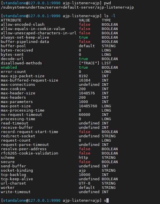 cd /subsystem=undertow/server=default-server/ajp-listener=ajp